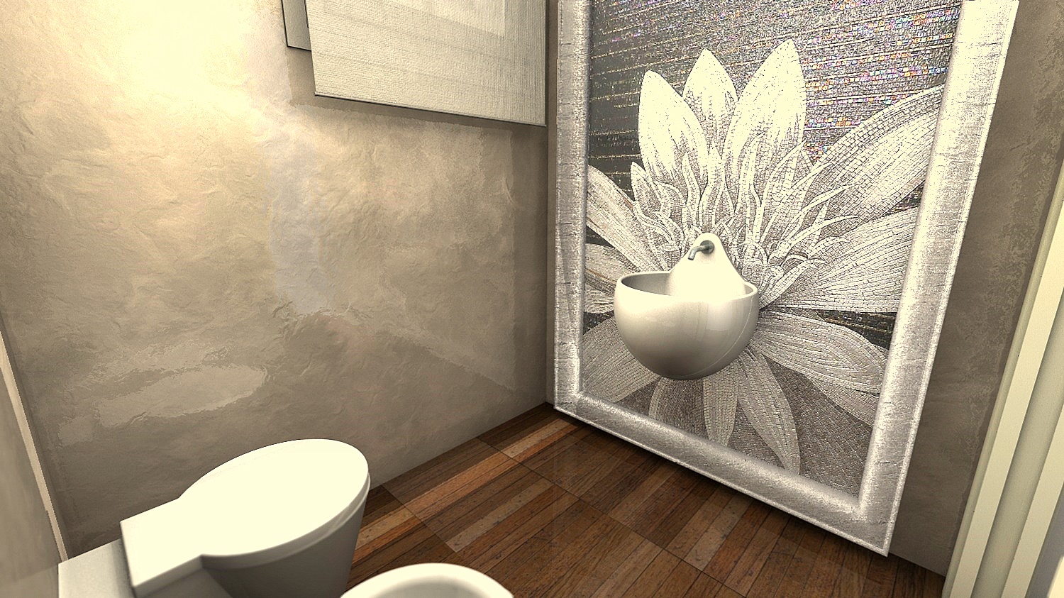 le pareti sono lucide perchè saranno realizzate in resina. purtroppo l'ultima parola ce l'ha il cliente