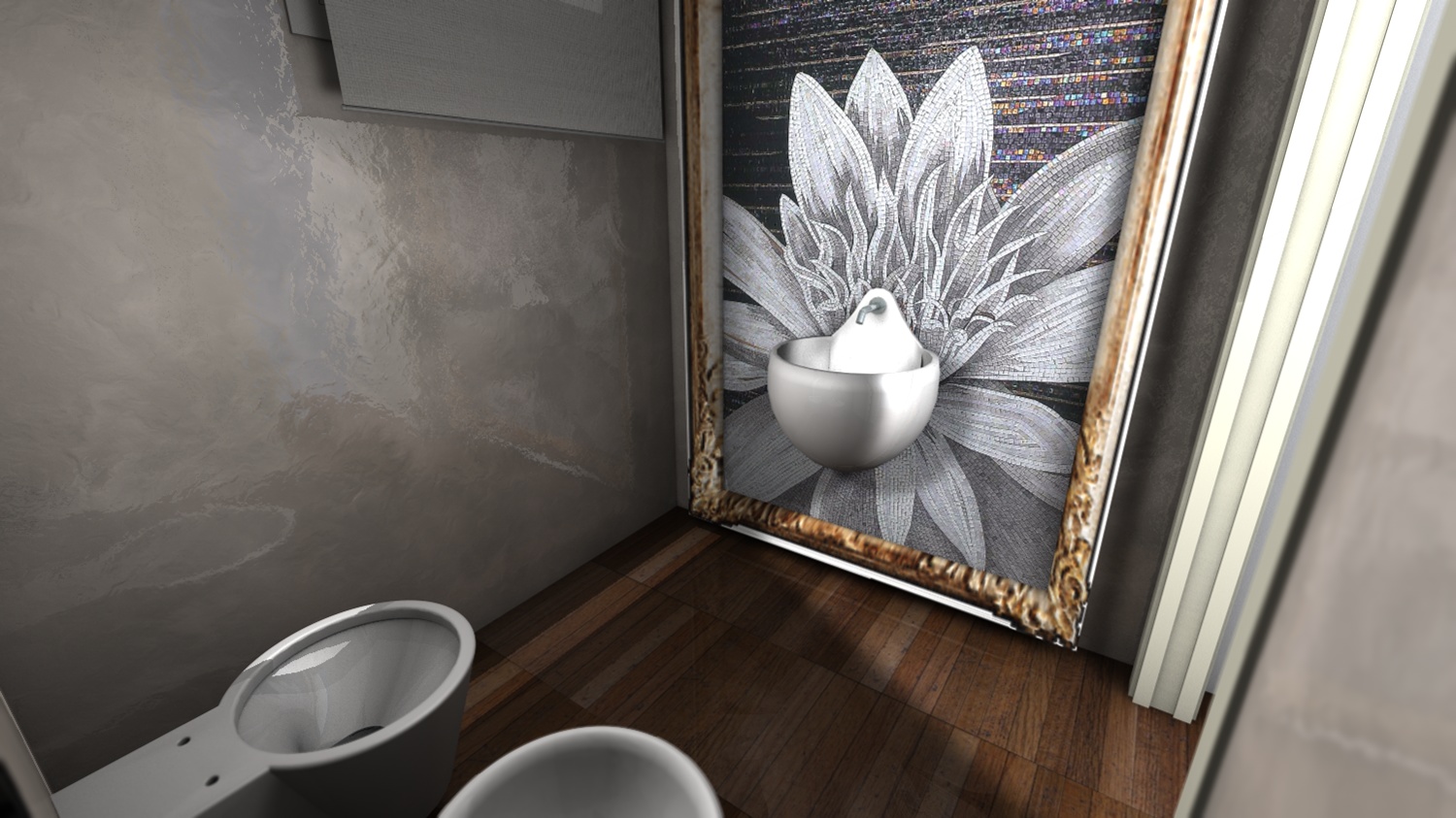 le pareti sono lucide perchè saranno realizzate in resina. purtroppo l'ultima parola ce l'ha il cliente