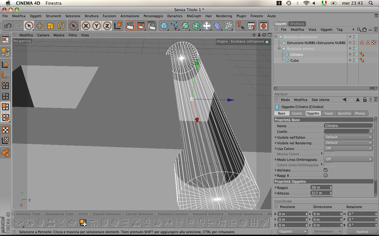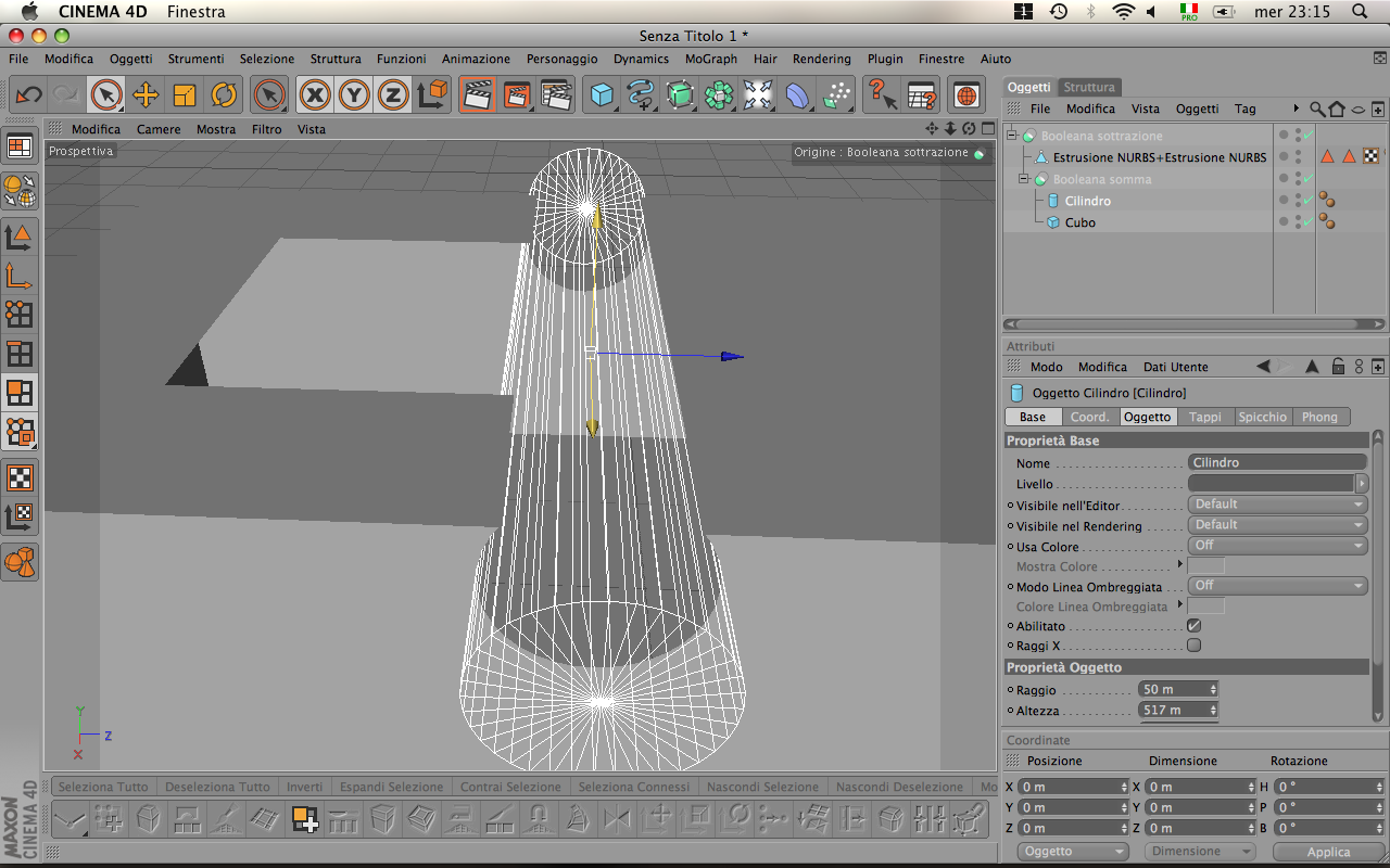 e da circa un mese che uso cinema..(per la tesi)....e ho spesso problemi con le booleane.... è assurdo... a volte non ne capisco il comportamento... e perdo ore a volte intere giornate!Capita che quando ho piu oggetti estrusione nurbs che si intersecano, ed io sottraggo alla loro somma un solido posizionato nel punto di intersezione dei precedenti....beh e qui che succedono cose strane .....a volte non crea i tappi...quindi svuota l'oggetto..altre volte rimangono pezzi strani...