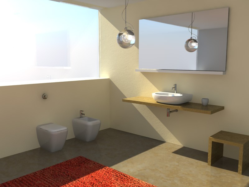 la scena mi sembra di conoscerla :D per quanto riguarda il tappeto rivedrei anche la proporzione della tex nel diffuse, il materiale dei sanitari in genere è piu riflettente anche se dipende sempre dal tipo di resa che vuoi dare del materiale e mi sembrano anche fuori scala ma è un parere personale
