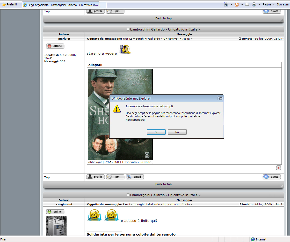 In alcune discussioni il blocco dura talmente che IE8 mi dice: