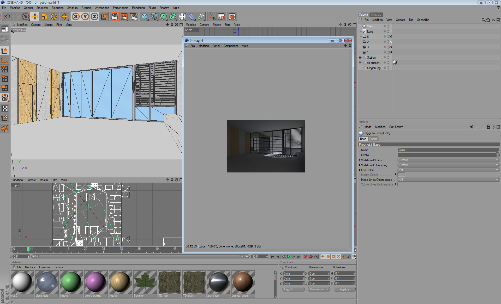 Bhe, ho reimpostato cielo e luci e tolto anche i materiali da paviemnto mobili e soffitto. solo iu vetri e le lamelle di legno restano. sembra che le macchie siano scomparse.