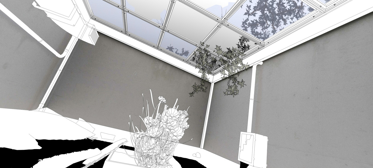 in più ho provato a fare uno schizzo per capire cosa aggiungere e come concludere l'ambientazione: niente albero, vetri rotti, sporchi e scheggiati, edera, ma [nei limiti del possibile] e ancora soggetta a modifiche e migliorie [