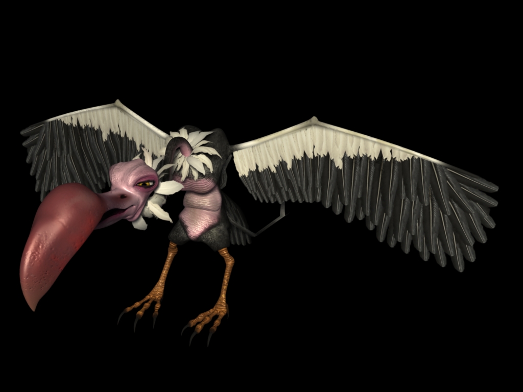Spiego subito che per il ruolo che assumerà l'uccellaccio nel corto è anche fin troppo dettagliato, ma allo scopo di raggiungere un livello di modellazione e texturing più approfondito, ho cmq voluto dargli un'aspetto più significativo, cercando di curarlo un pò di più.