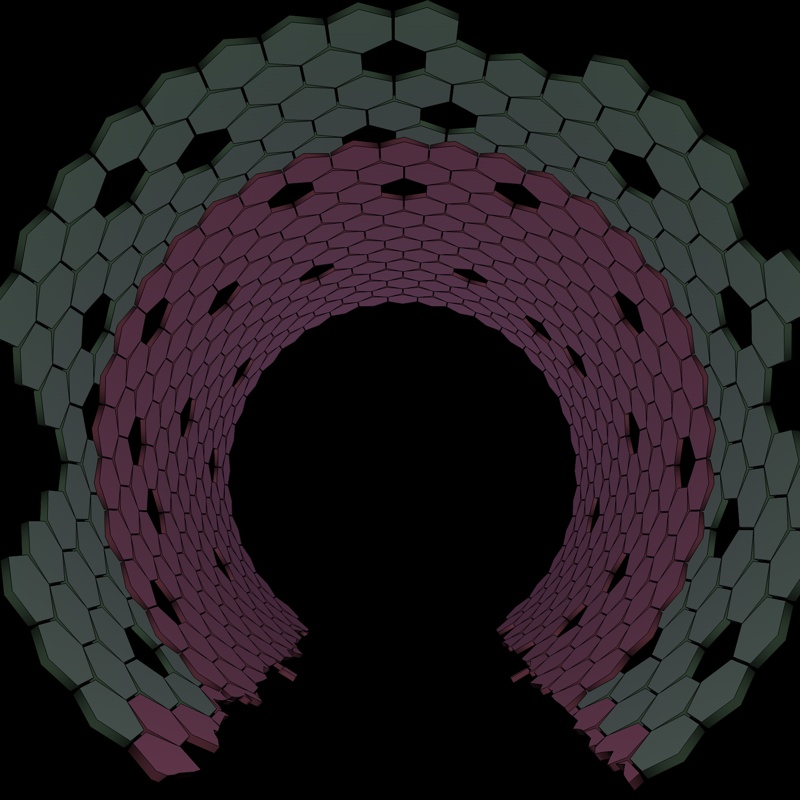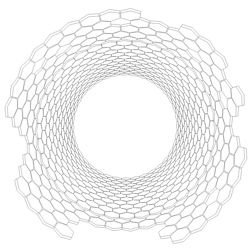 Inoltre nei cilindri non ci sono pentagoni ma solo esagoni, quell'effetto è dato dalla sovrapposizione del secondo cilindro sul primo....
