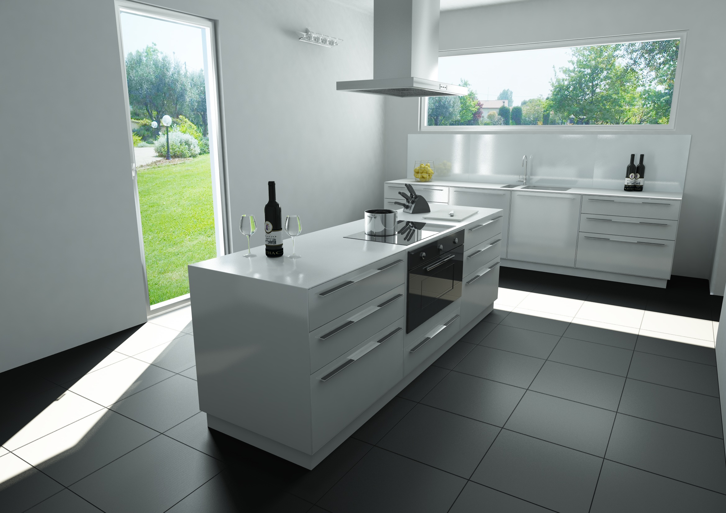 davvero bello mi da l idea di una giornata primaverile...ma è da finire di texturizzare vero..xchè cosi mi sambra una di quelle cucine da "ristorante" sterili e bianche :)
