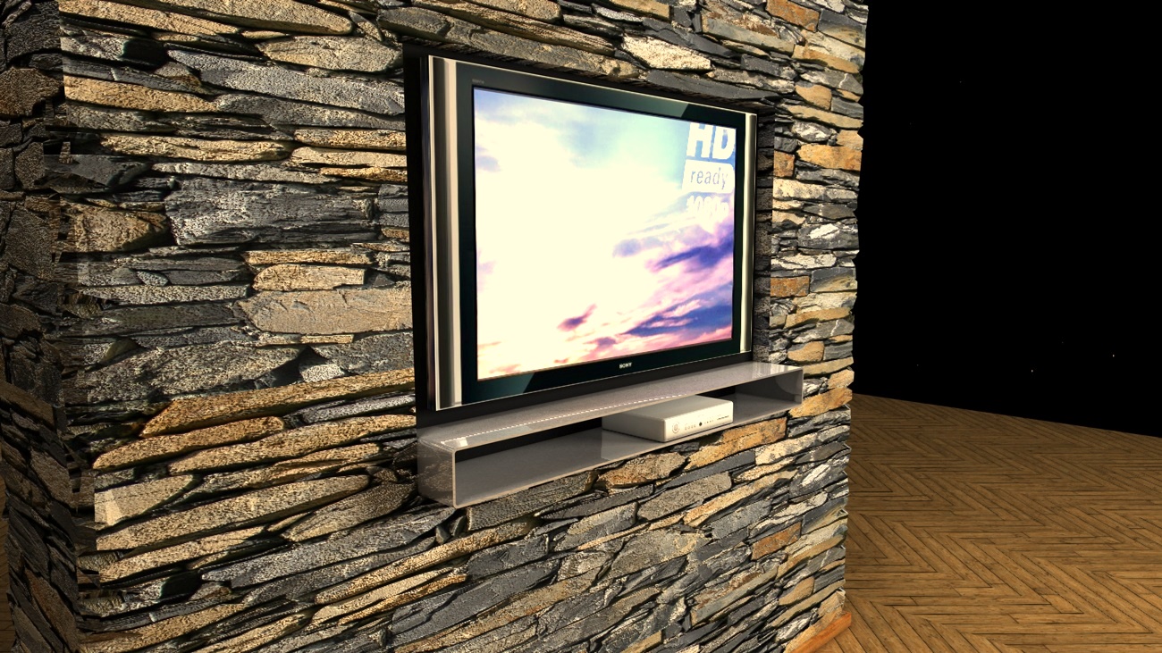 ho costruito un solido in autocad al quale ho sottratto un parallelepipedo per creare una nicchia dove è stato inserito un televisore.