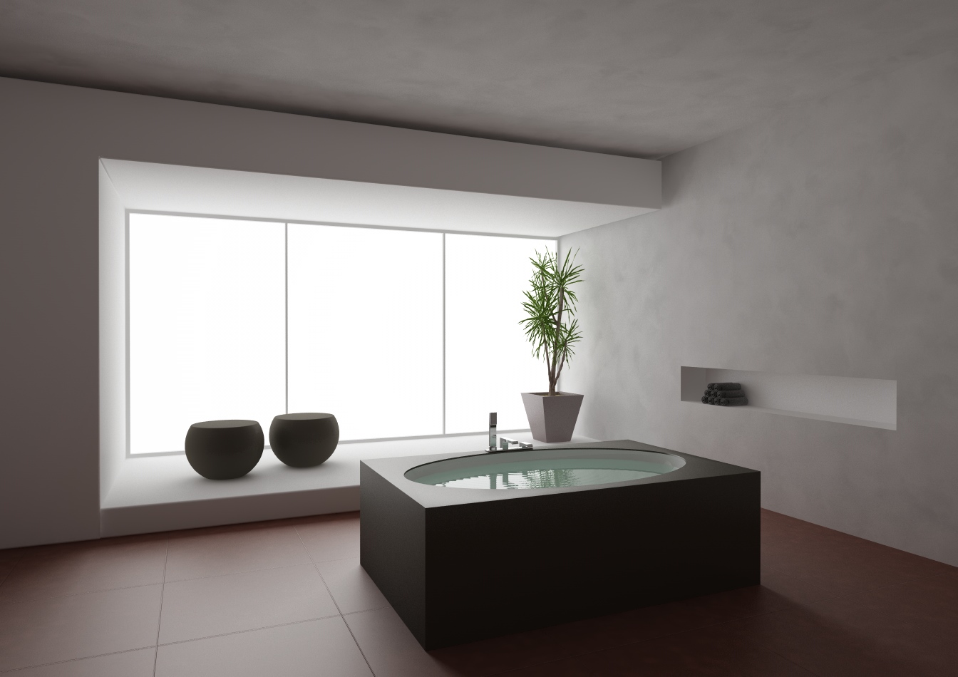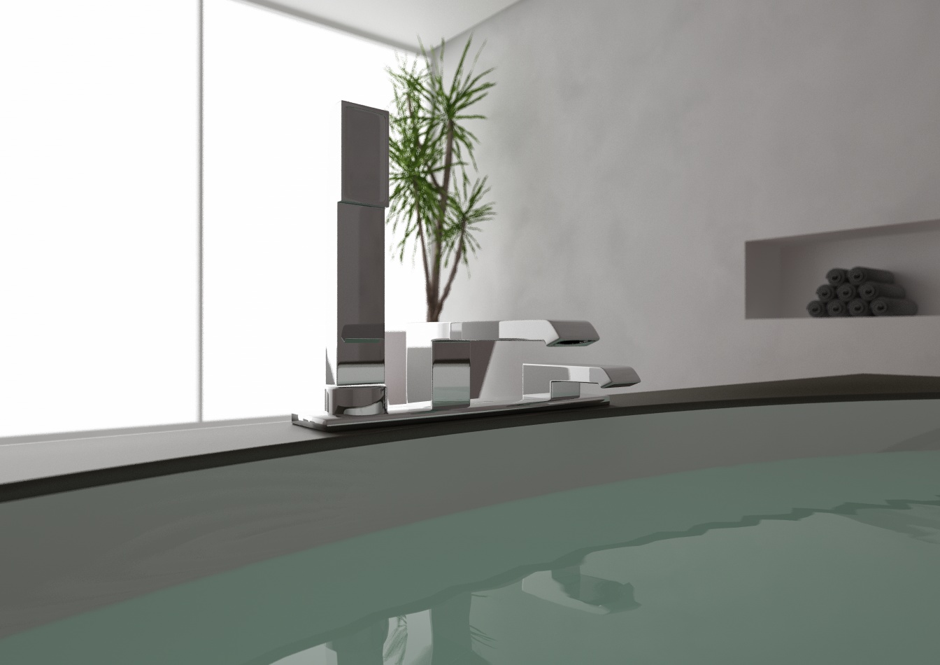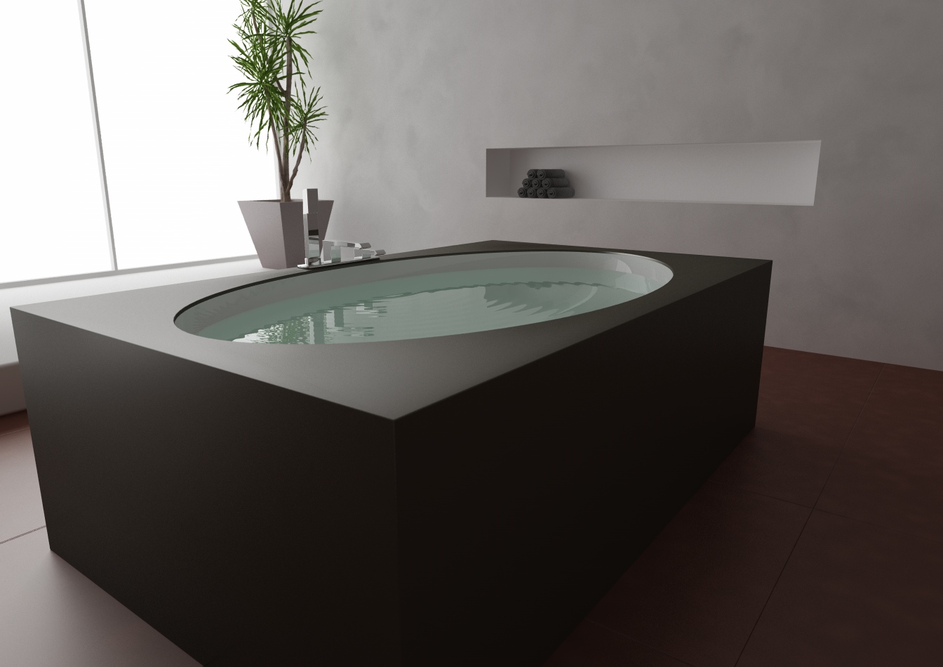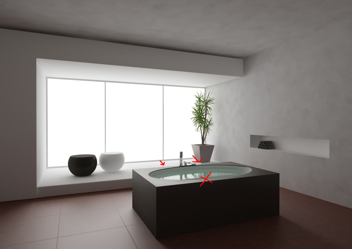 Se mi posso permettere, arrotonda maggiormente gli spigoli della vasca. é una delle cose che rende meno credibili i rendering. Ho lavorato per una tipa che non ti dico come spaccava sull'argomento.