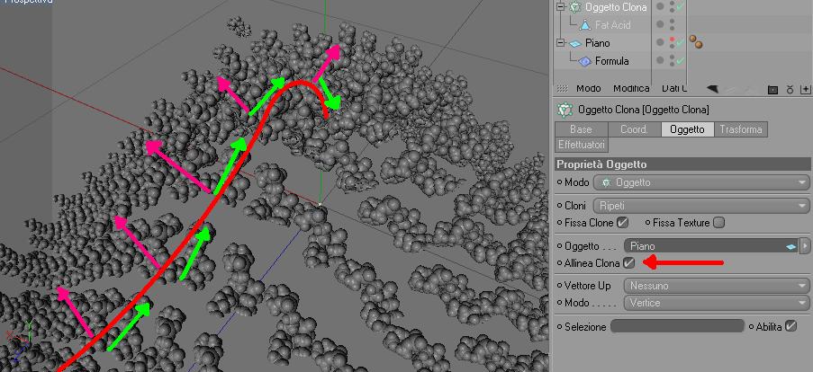 ho attivato Allinea Clone, ma gli oggetti si adagiano con i loro assi Y (in verde nell'immagine)