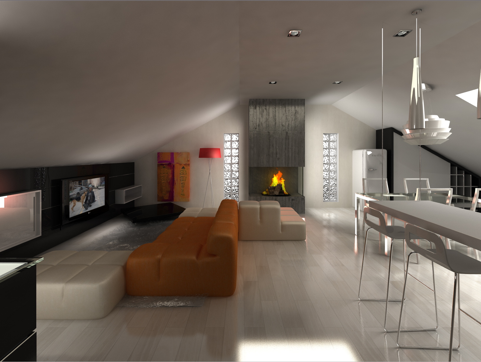 la prima mi gusta mucho..davvero..dovrebbe essere una sorta di loft.?..con la luce che hai messo mi da un senso di "accoglienza" ...