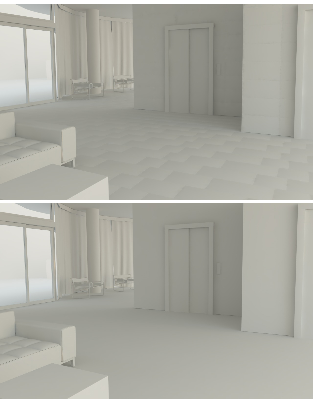 poi nella scena in basso , senza piastrelle e texture , sembra che l'illuminazione sia corretta !!
