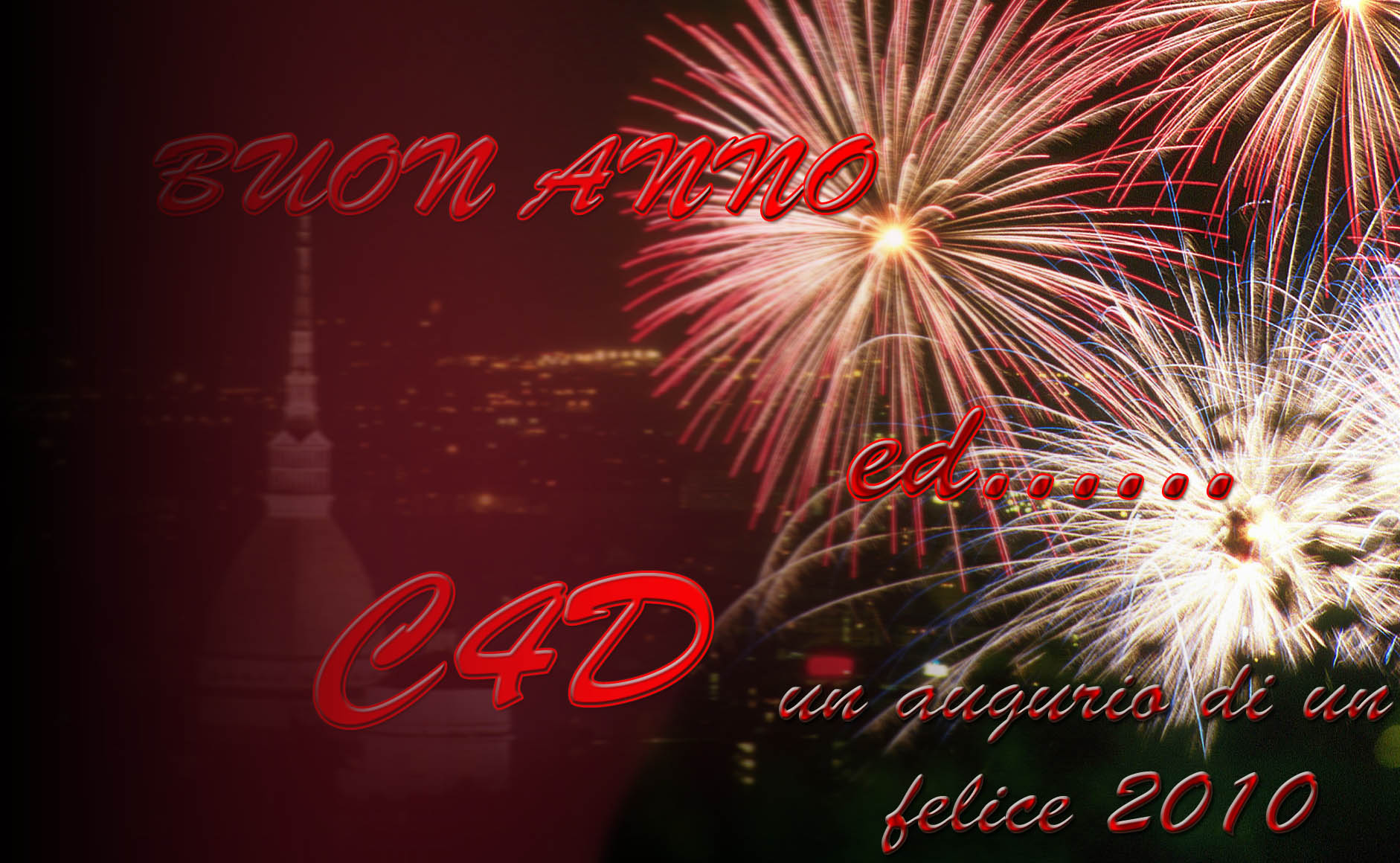 Ad oggi è già un anno che uso cinema e volevo ringraziare tutte le persone che mi hanno aiutato consigliandomi ed aiutandomi dai primissimi render fino agli ultimi! Contento anche di essere stato, spero, d'aiuto x qualcuno vi auguro uno splendido 2010!!!