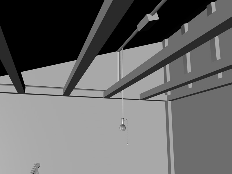 Come idea primaria era quella di illuminare la scena con l'aiuto di una lampadina appesa (quelle che si accendono tirando il cordoncino) ed è quì il problema iniziale, non riesco ad accenderla, inoltre questa luce dovrebbe effettivamente illuminare l'ambiente.