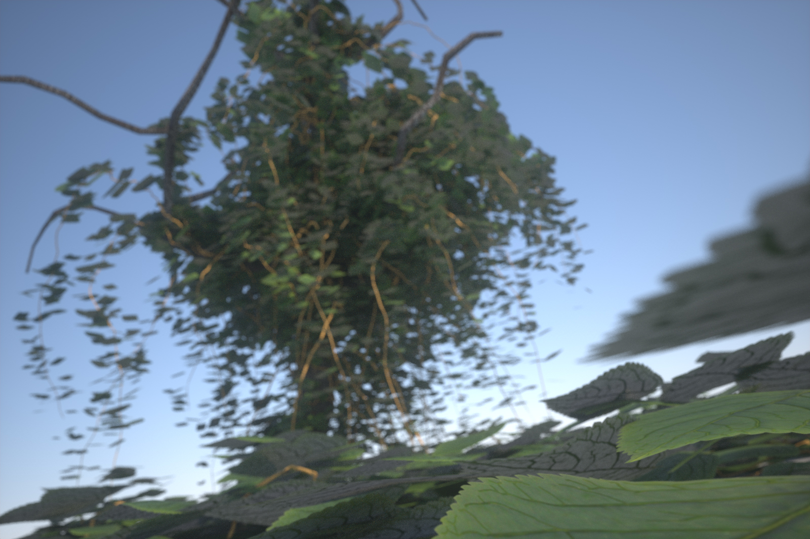 per le foglie stai utilizzando il nuovo SSS? l'idea di masterzone è un ottimo spunto, l'edera sul fondo la farei poggiare su un muretto ed aggiungerei anche il terreno, cosi fluttua tutto troppo nell'aria secondo me.