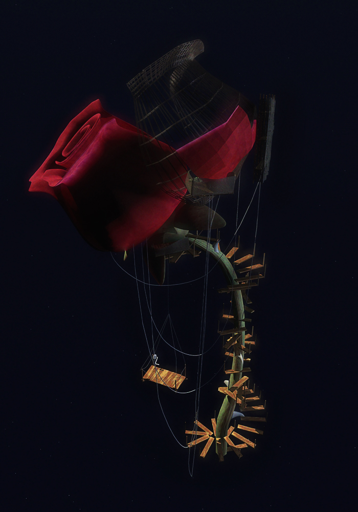 Ho iniziato l'allestimento del cantiere, tra le varie c'è una scala a chiocciola che si arrampica sul gambo della rosa.