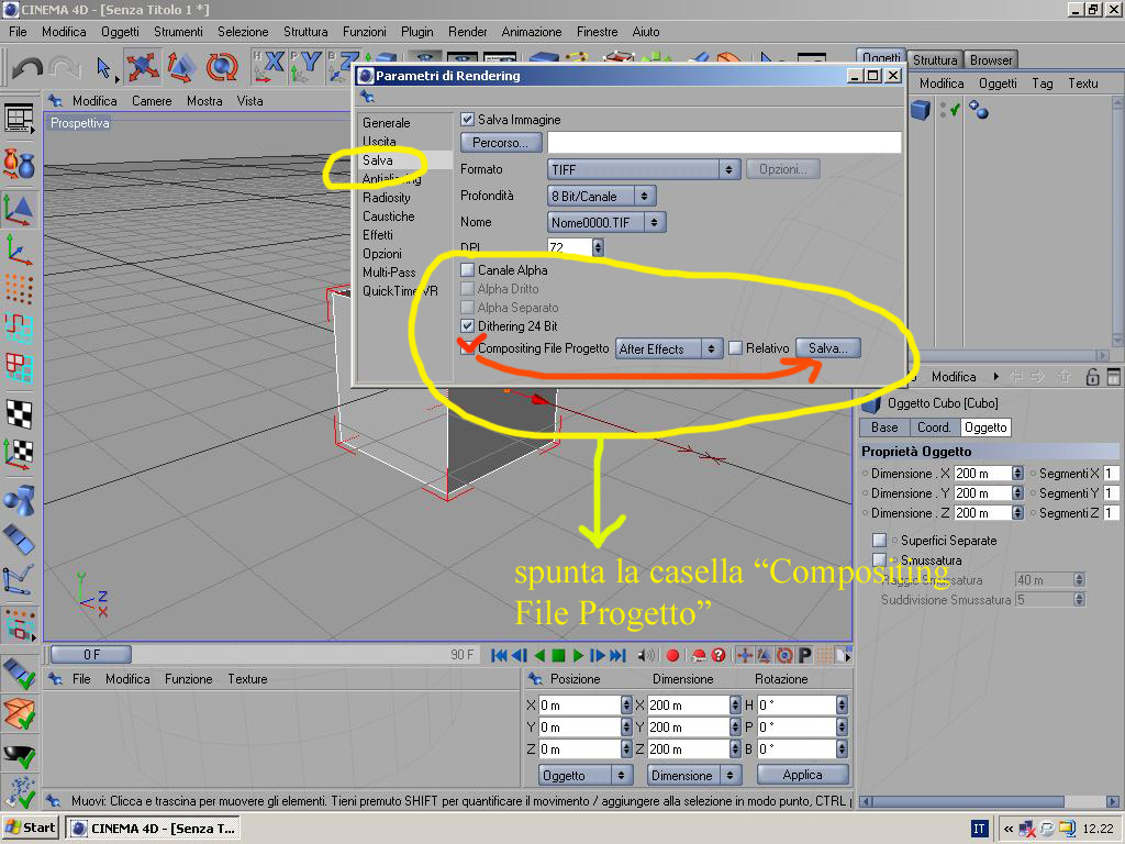Generalmente, ma è un modus operandi, quando si prevede l'uso di AE si esce da Cinema come sequenza di immagini (TIFF ad esempio), che poi verranno sequienziate da AE come clip. Questo permette, per dirne una, di ritoccare un frame con Photoshop, ad esempio. Come si è soliti uscire da Cinema in Multi-pass, che permette in AE di intervenire, se necessario, solo sul Colore, ad esempio, in quanto con il Multi-pass verranno generati singoli Layer e quindi si andrà ad agire solamente su quello in caso di necessità.