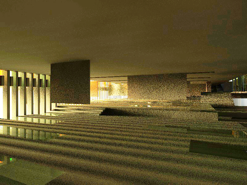qua invece ho usato una luce area molto alta e molto distante dall'edificio intensità 50000 ombre area