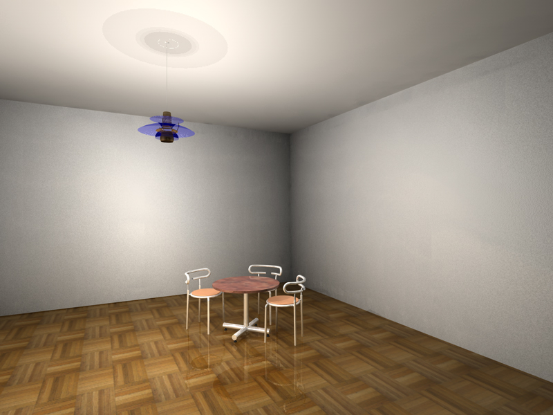 Potrebbe essere anche un idea per l'utilizzo della luce nella stanza, pero' dato che hai lavorato in radiosity, non e' necessario usare il falloff, anche se vedo che nel centro dei muri ti si stanno un po bruciacchiando...