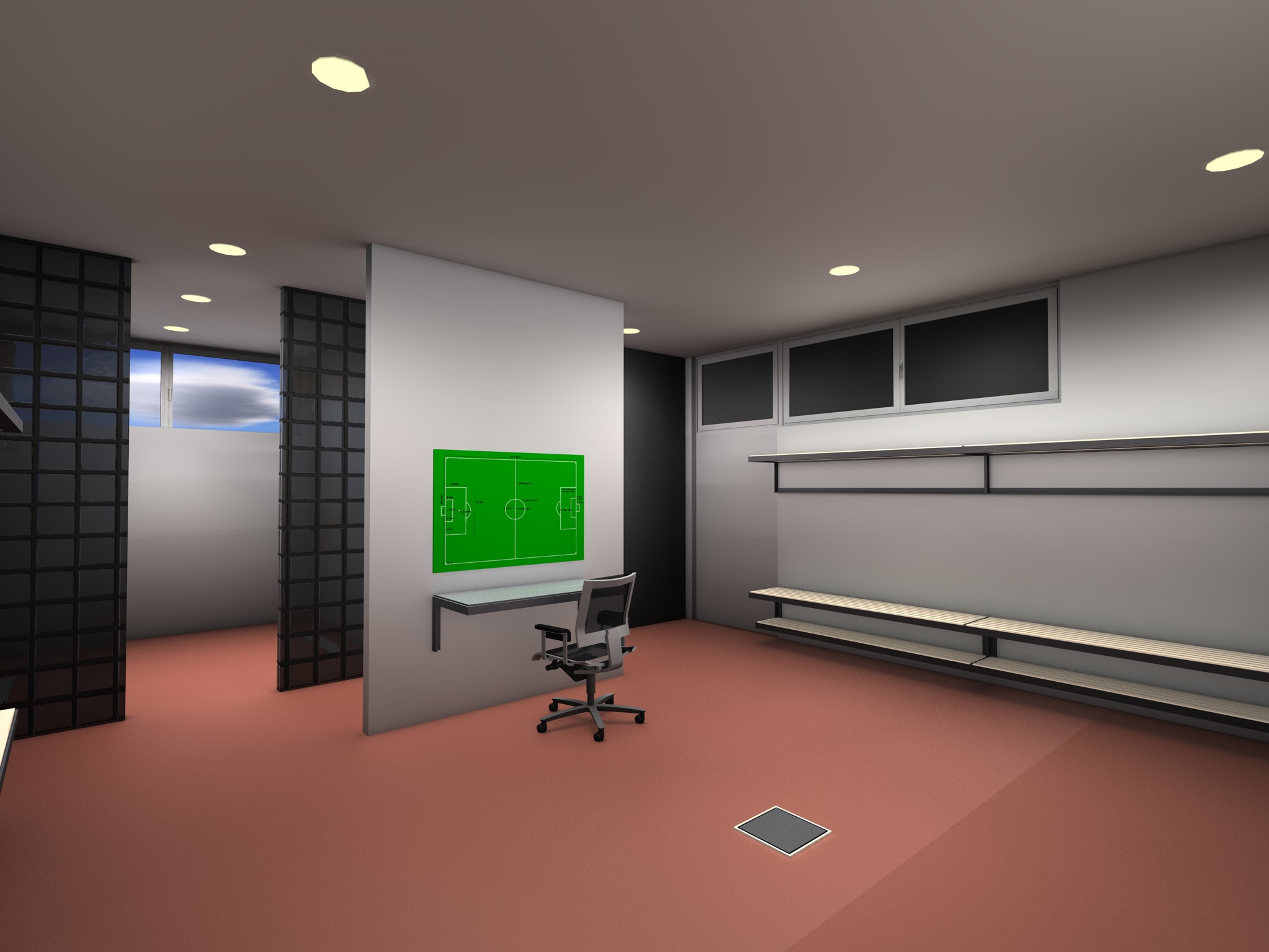 Sono alle prese con la renderizzazione di uno spogliatoio di un campo da calcio..questo in allegato solo che a mio parere è poco realistico..mancano oggetti probabilmente..però non so dove trovarli!come un borsone, una giacca appesa, un cestino o così...