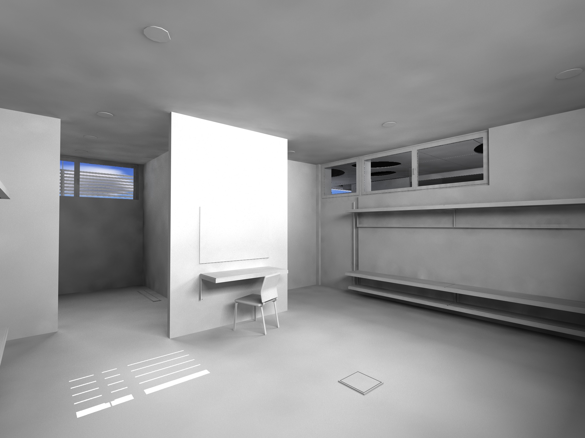 1. dove c'è una finestra ci deve essere una Luce Area grande quanto l'apertura, con ombre area e decadenza lineare fino alla parete di fronte [all'inizio, per alleggerire il calcolo, vai nel pannello Dettagli e abbassa i Campioni a 20];
