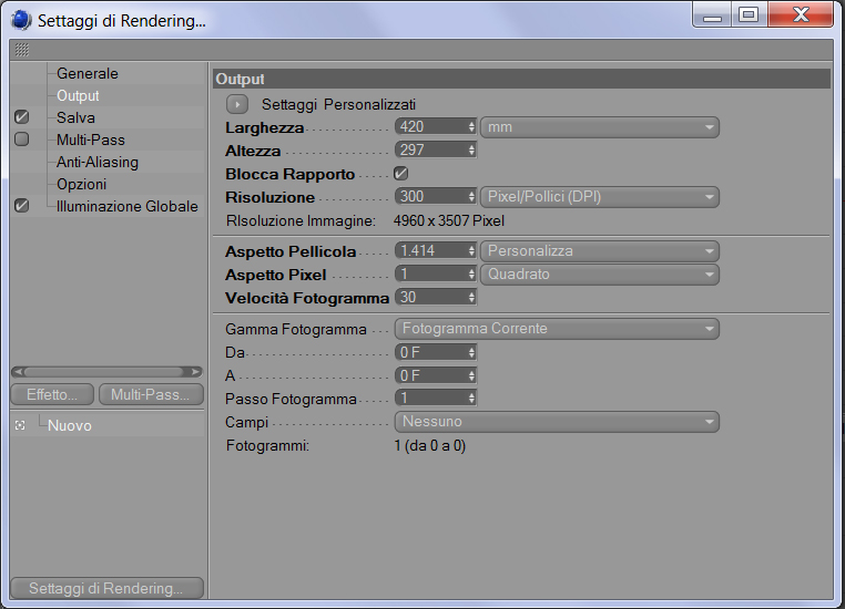Poi salvo l'img renderizzata tramite File>salva con nome (qui compare correttamente 300dpi come impostato prima).