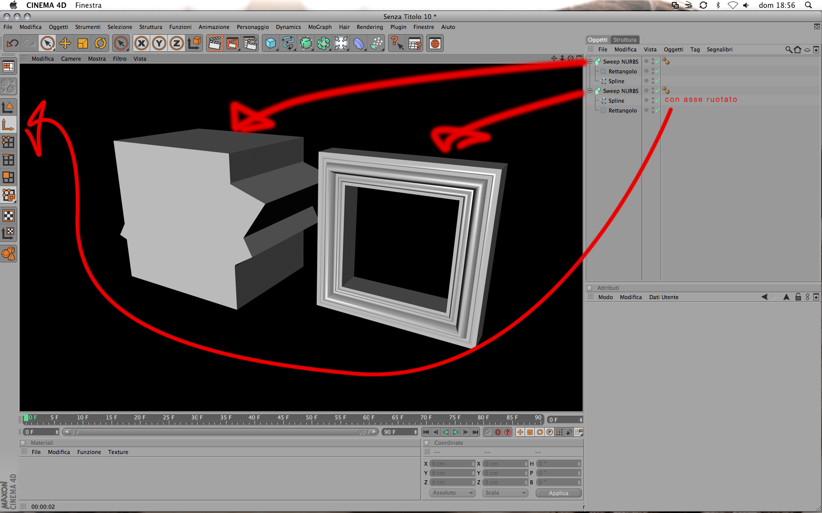 in una (come nell'esempio di g_luca85) la modanatura guarda all'interno del percorso, nell'altra in cui ho girato di 90° l'asse la parte decorata guarda fuori, come deve fare una cornice di un quadro