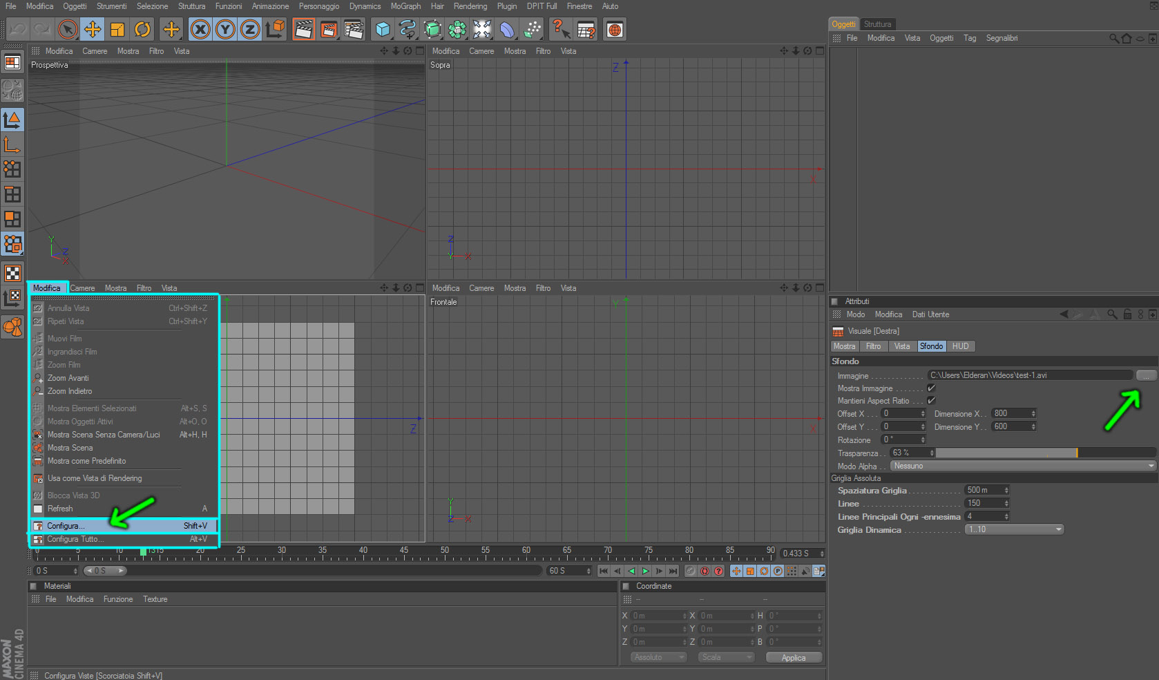 per caricare un video come riferimento, devi caricare il video in un materiale, dopodiché devi assegnare quest'ultimo ad un oggetto Background.