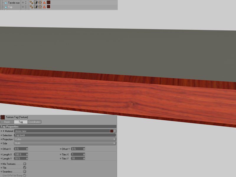 2- Ho modellato un top di una cucina con i bordi smussati a 45°, e vi ho applicato un materiale legno sulo su una selezione...ora nella parte frontale sono riuscito a ruotare la texture per seguire la vena del legno, ma negli smussi non riesco...come posso fare?