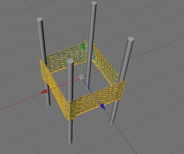 ho postato una immagine d'esempio di un telaio formato da 4 aste a cui ho dato una tag collisione e una superficie esterna che vorrei aderisse a queste aste, alla quale ho assegnato una tag tessuto.