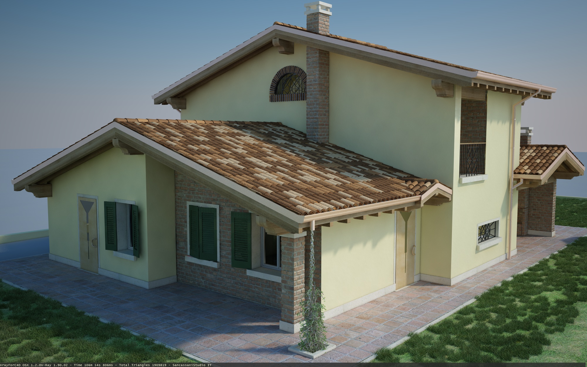Intanto vi posto l'ultimo rendering... un po lungo a dir il vero. ho deciso per i mattoni in facciata, pietre che mi piacciono ce ne sono veramente poche.. così mi sembra più armonioso...