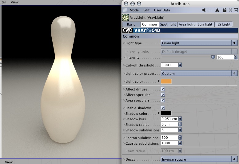 mi funziona ora però non omni ma area light...... common 20 e quadratica..... consiglio per renderla più realistica..