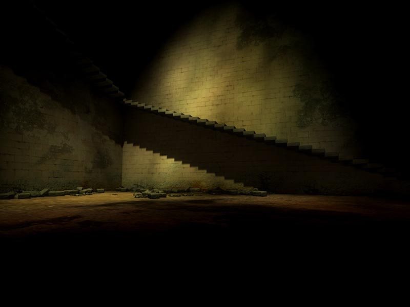 Se posso dire la mia, aggingerei un po' di sporcizia anche nell'intradosso dei gradini, in corrispondenza dell'innesto dei gradini nel muro di destra...