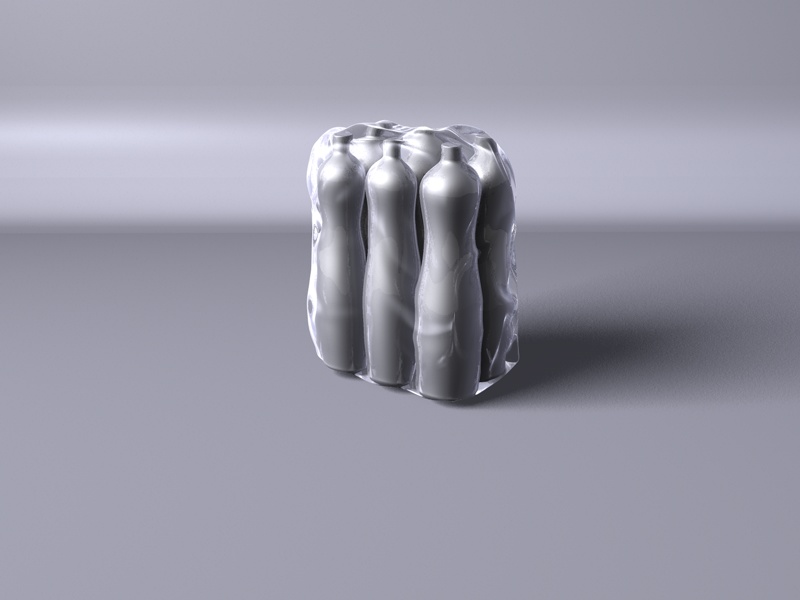 adesso dovresti avere le bottiglie che mantengono il cellophan. Se provi a muovere le bottiglie, vedrai che il cellophan lo segue.
