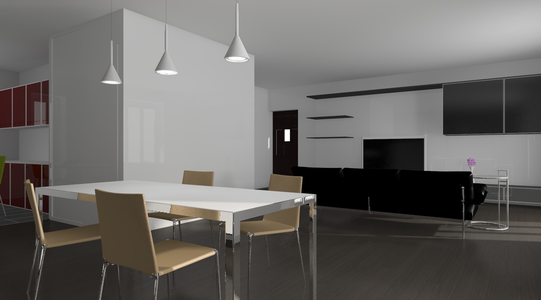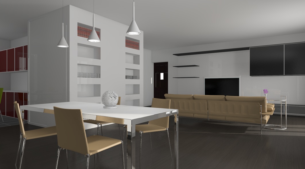 I modelli quasi tutti B&B italia, tranne il mobilio in fondo e la cucina modellati -e si vede- velocemente da me.