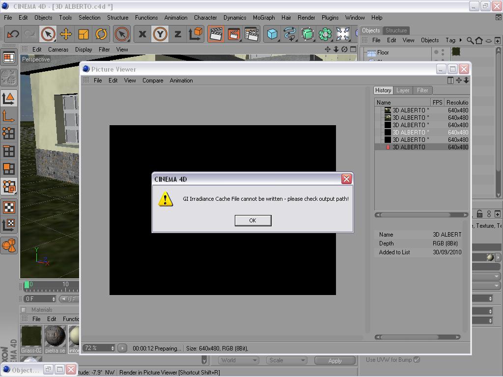 Scusami ma l'errore è scritto: Cinema non riesce a salvare il file della cache della GI. O togli il salvataggio oppure selezioni un percorso scrivibile.