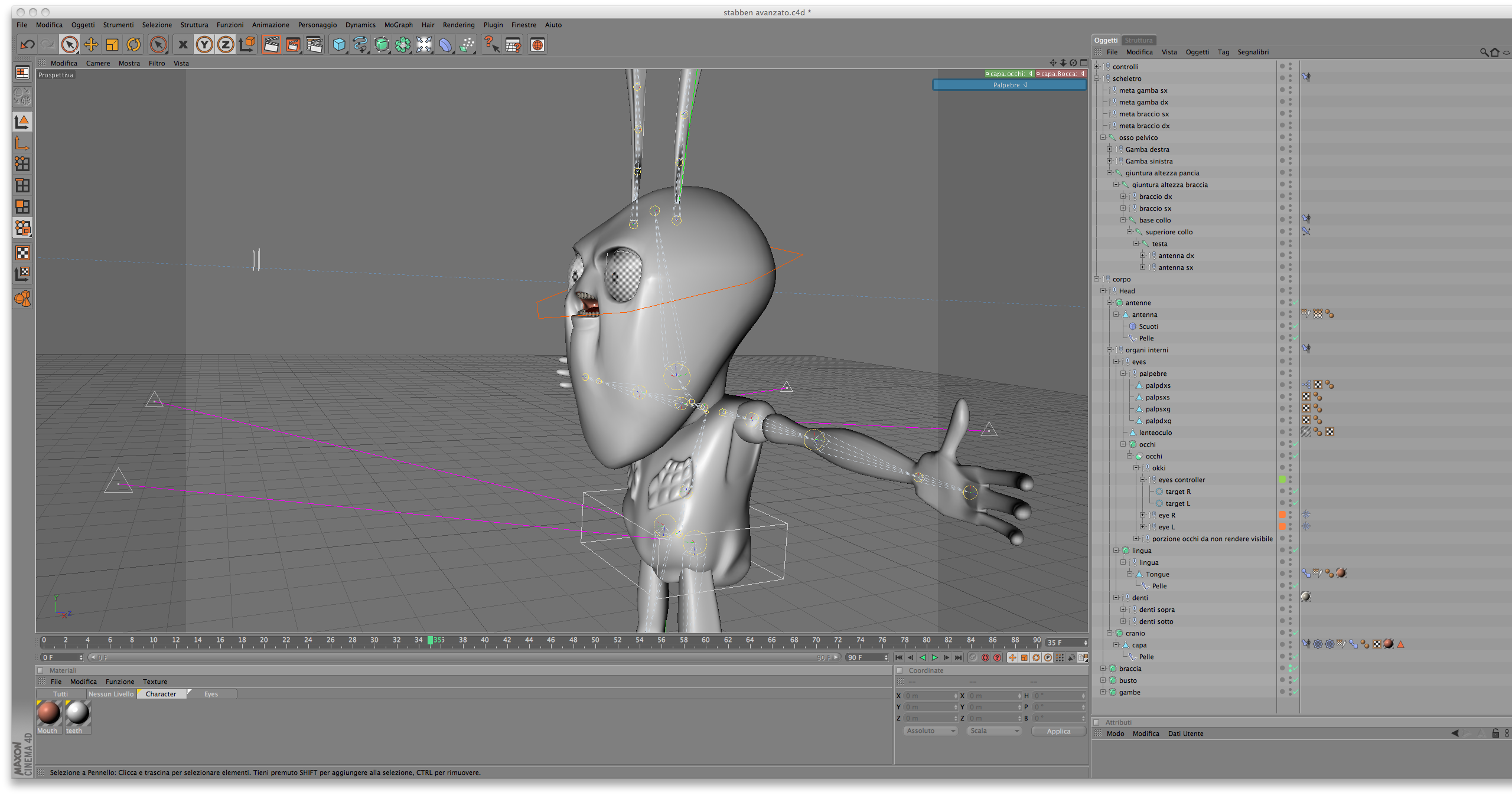 quindi adesso mi tocca trovare uno stratagemma per muovere su e giu i denti inferiori,nel momento in cui la bocca si apra attraverso il tag morph,magari smanetterò usando Xpresso. :-_-