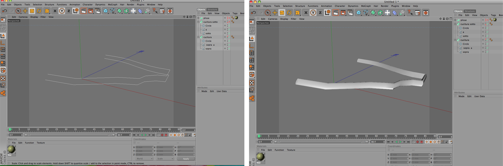 poi per fare la parte sopra e sotto (quelle cuciture) prendi le due spline, le copi, e le metti ognuna dentro una sweep, con un'altra spline ovale come sezione.