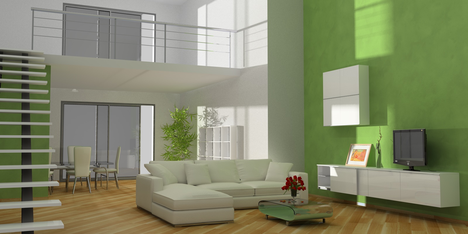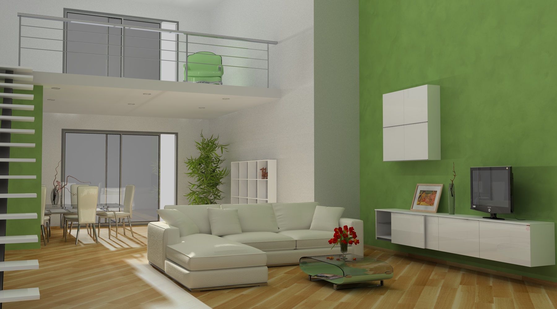 la renderei un pò vissuta, cioè ruoterai un pò qualche sedia, metteri qualche giornale, anche magari sul gradino della scala, un bel tappeto, un bello sfondo esterno una poltrona o quello che vuoi sul soppalco e sei a cavallo!! :D :D