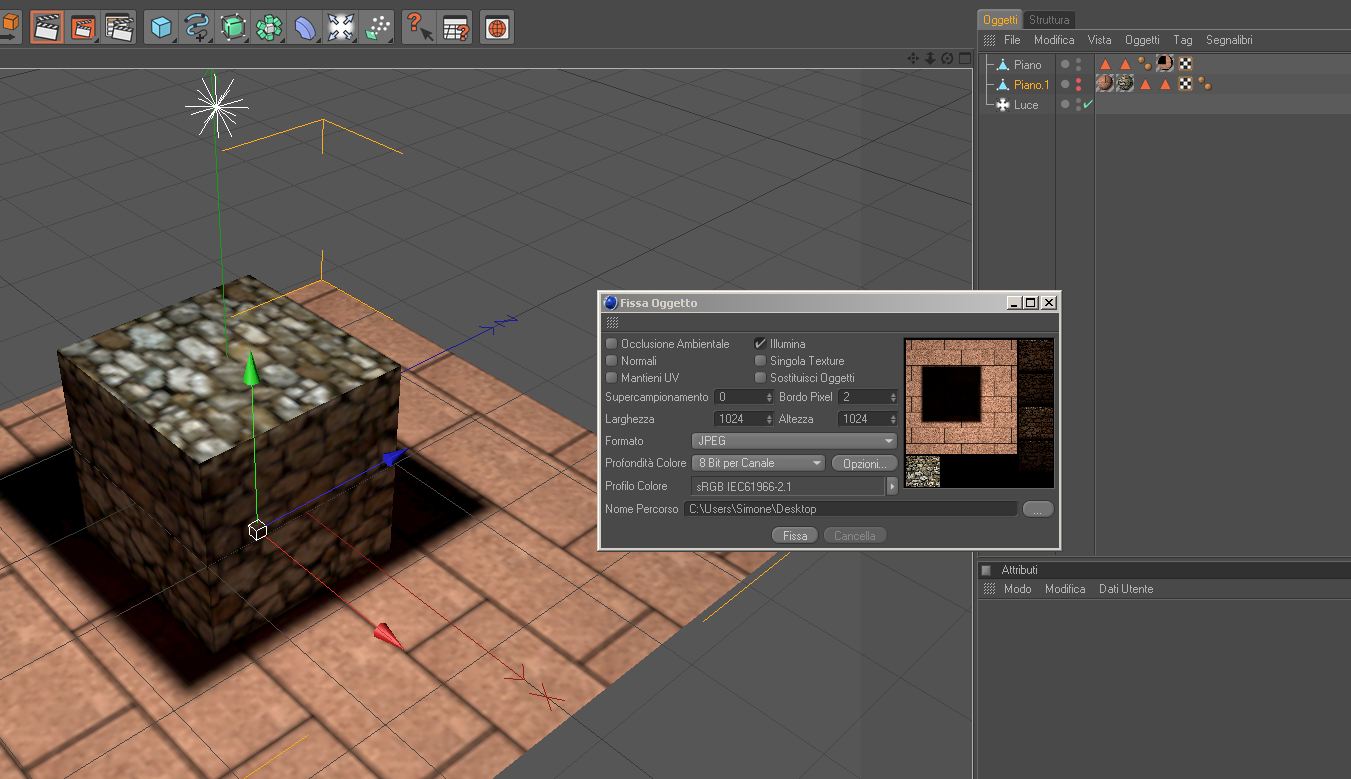 Spunto quindi l'opzione "illumina" ma nulla... C4d mi genera soltanto una texture che chiama "colore" nella quale c'è compresa anche l'illuminazione (ma non l'ombra)