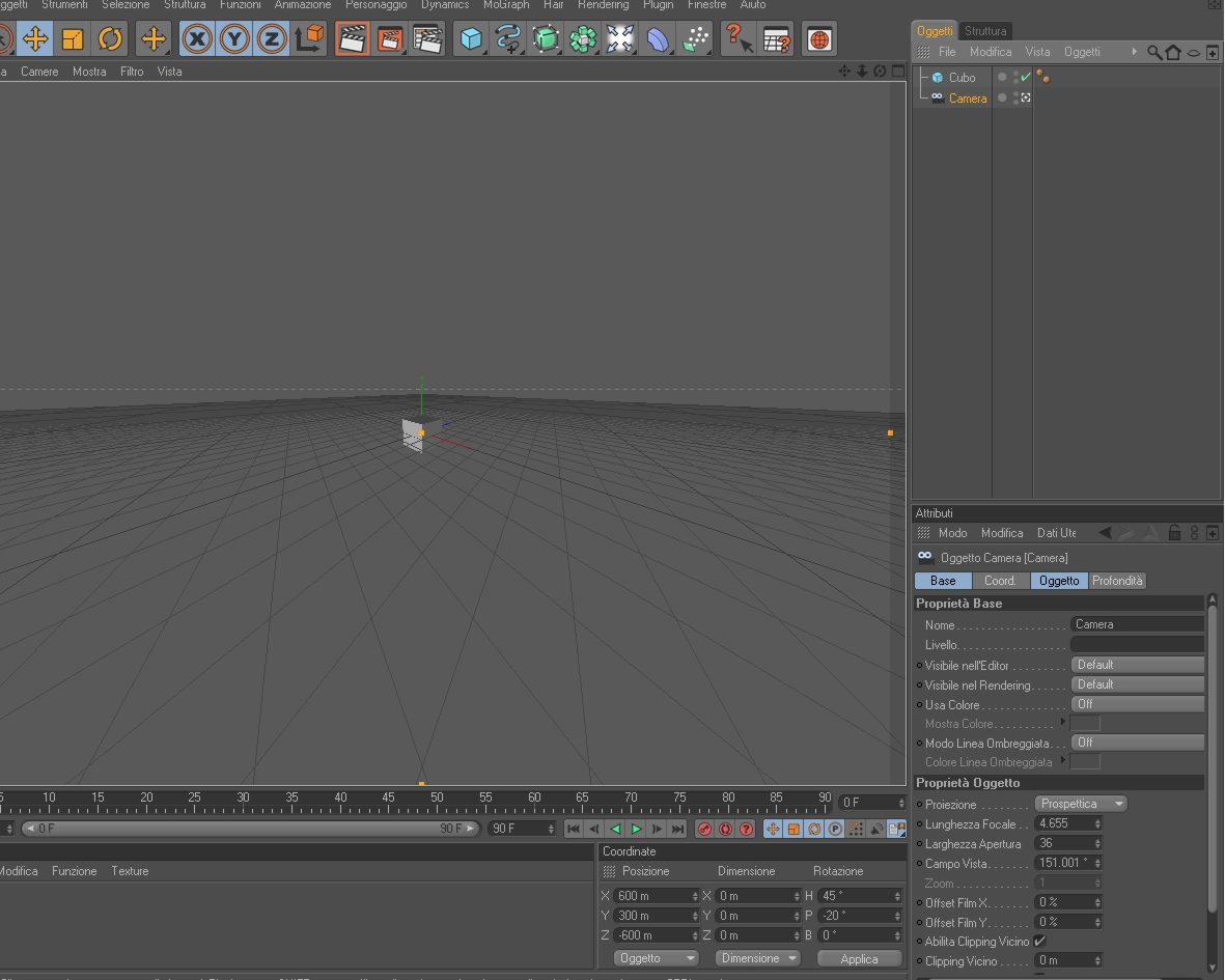 Comunque le impostazioni della camera sono: