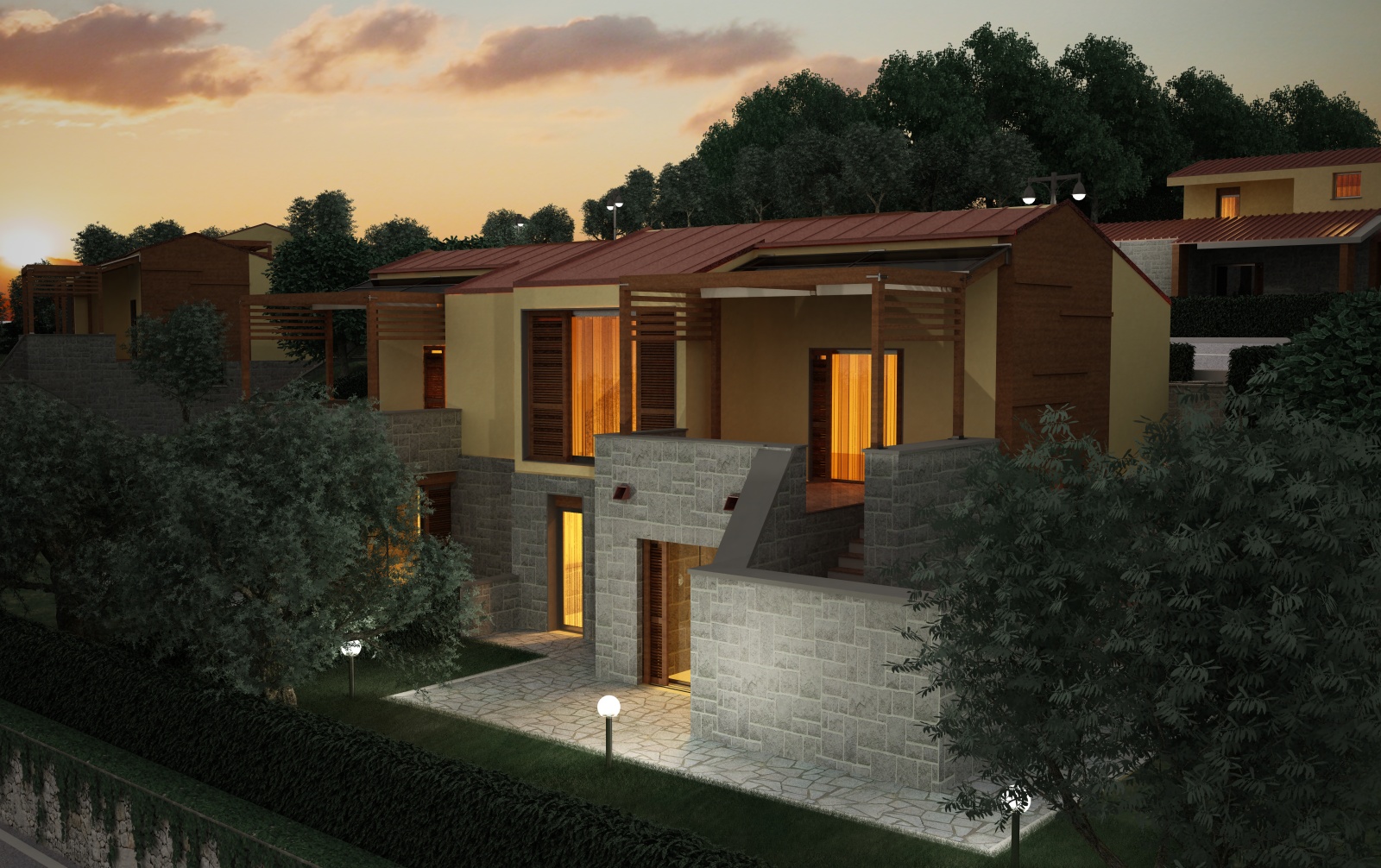 Come vedete ho inserito l' immagine di solo render sfornata con Vray 1.2 e la successiva post produzione su PS con l' aiuto dei post essetti di AR quali, alone, effetto lente delle luci e atmosfera.