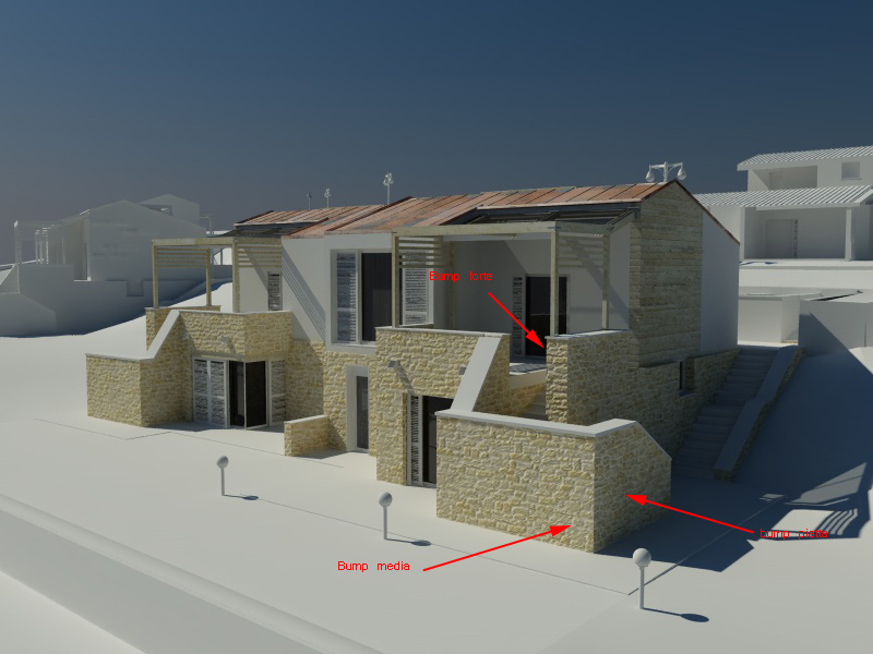 Posto un immagine dalla quale vedete che nella mappatura della pietra, la bump si comporta diversamente a seconda di dove si trova.. e sinceramente non ne afferro il motivo ??