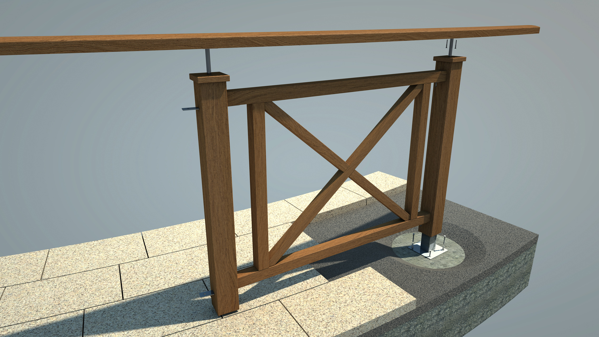 vi posto i render che sto realizzando per un falegname che vuol fornire al suo cliente una "scheda tecnica" di come verrà realizzato un parapetto per un anfiteatro, giuso per poi non incorrere in "fraintendimenti".