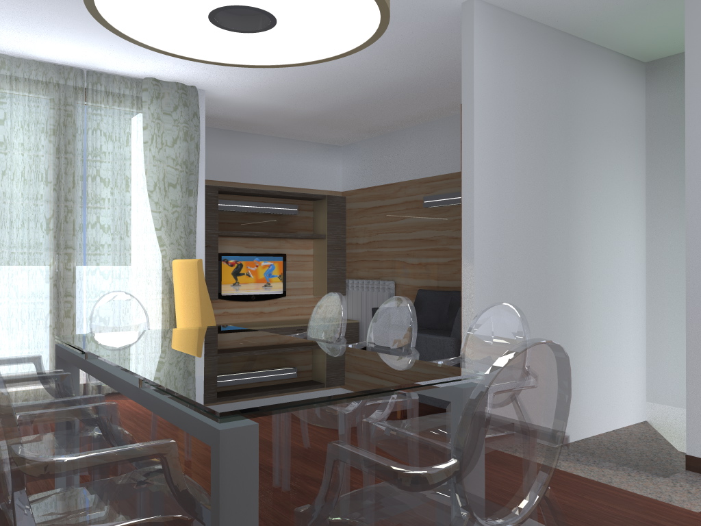 Ho questo soggiorno da sviluppare, la prima proposta l' ho sviluppata con Artlantis, ora le viste definitive le volevo provare ad eseguire con Cinema4d.