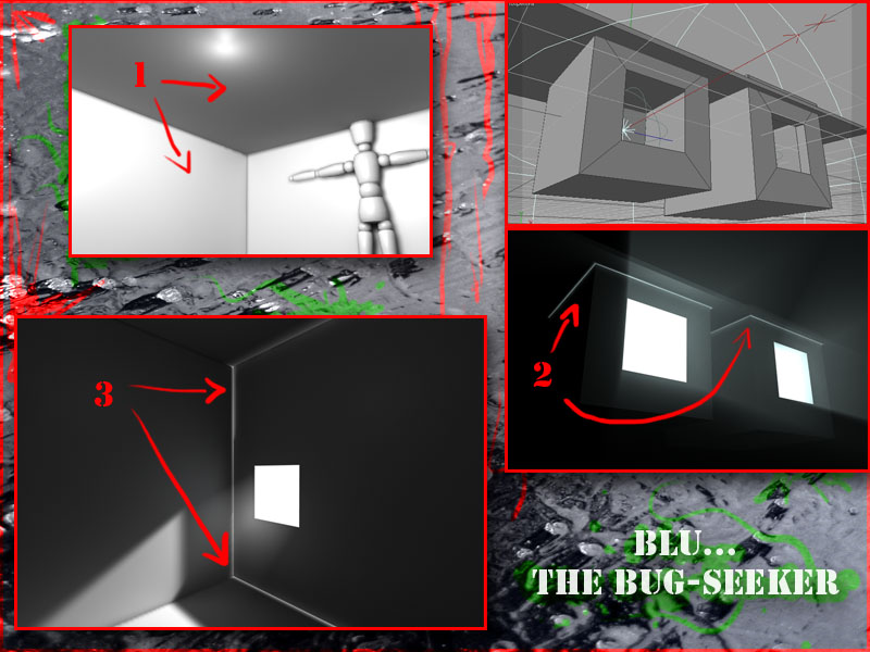 Situazione simile (come nel caso 3) essendo noi dentro un cubo, con fuori la luce, ci ritroviamo delle illuminazioni lungo i bordi. Ed ho provato in vari modi a risolvere il problema. Alla fine devo inventarmi degli escamotage assurdi per evitare questi bug.