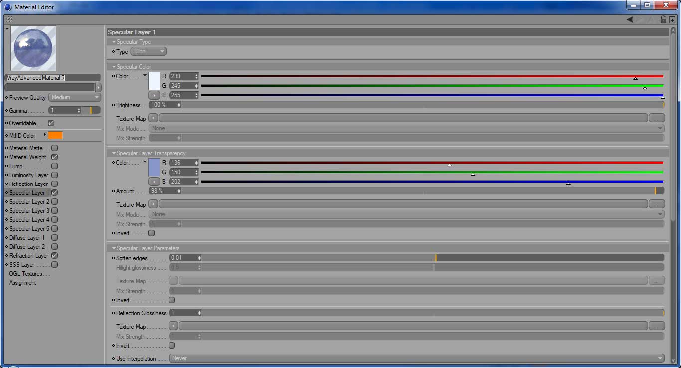 Ho rifatto il vetro. Quello sotto Refraction è SSS Layer... Il risultato è come quello che vedi.