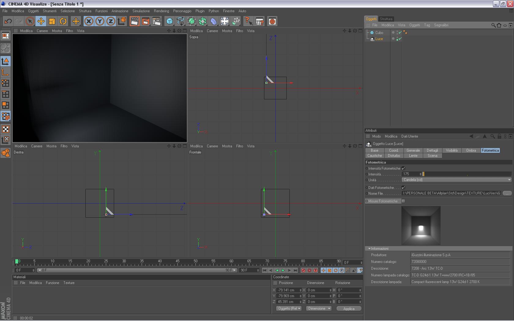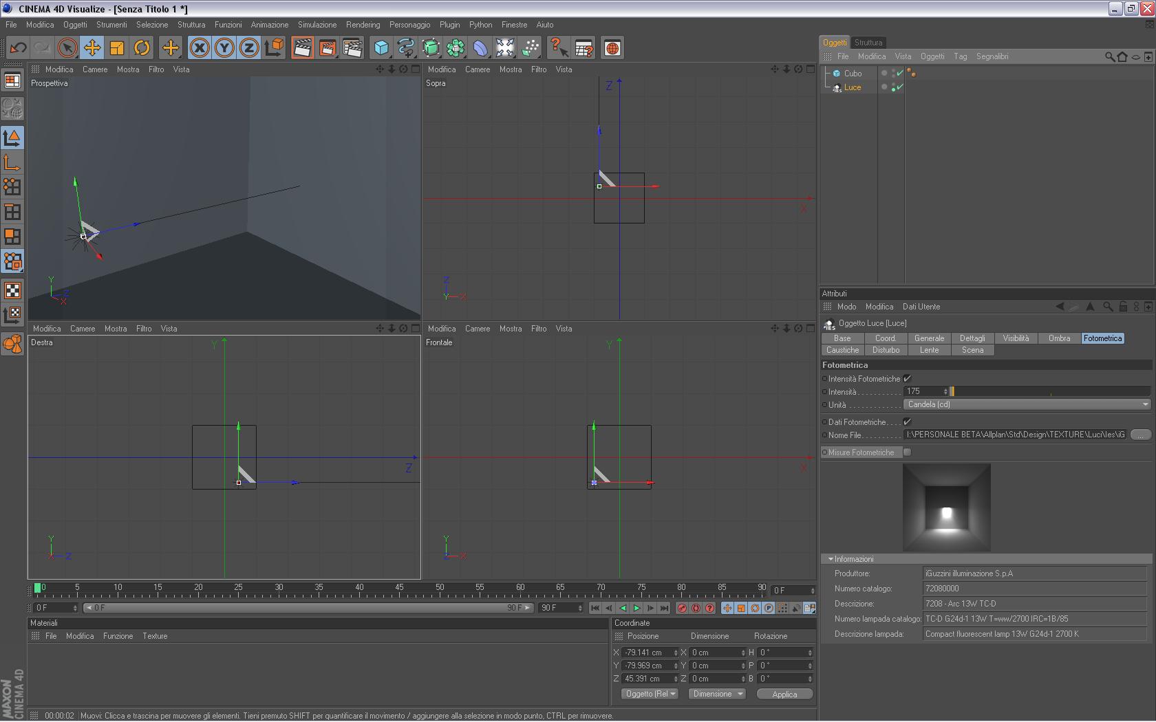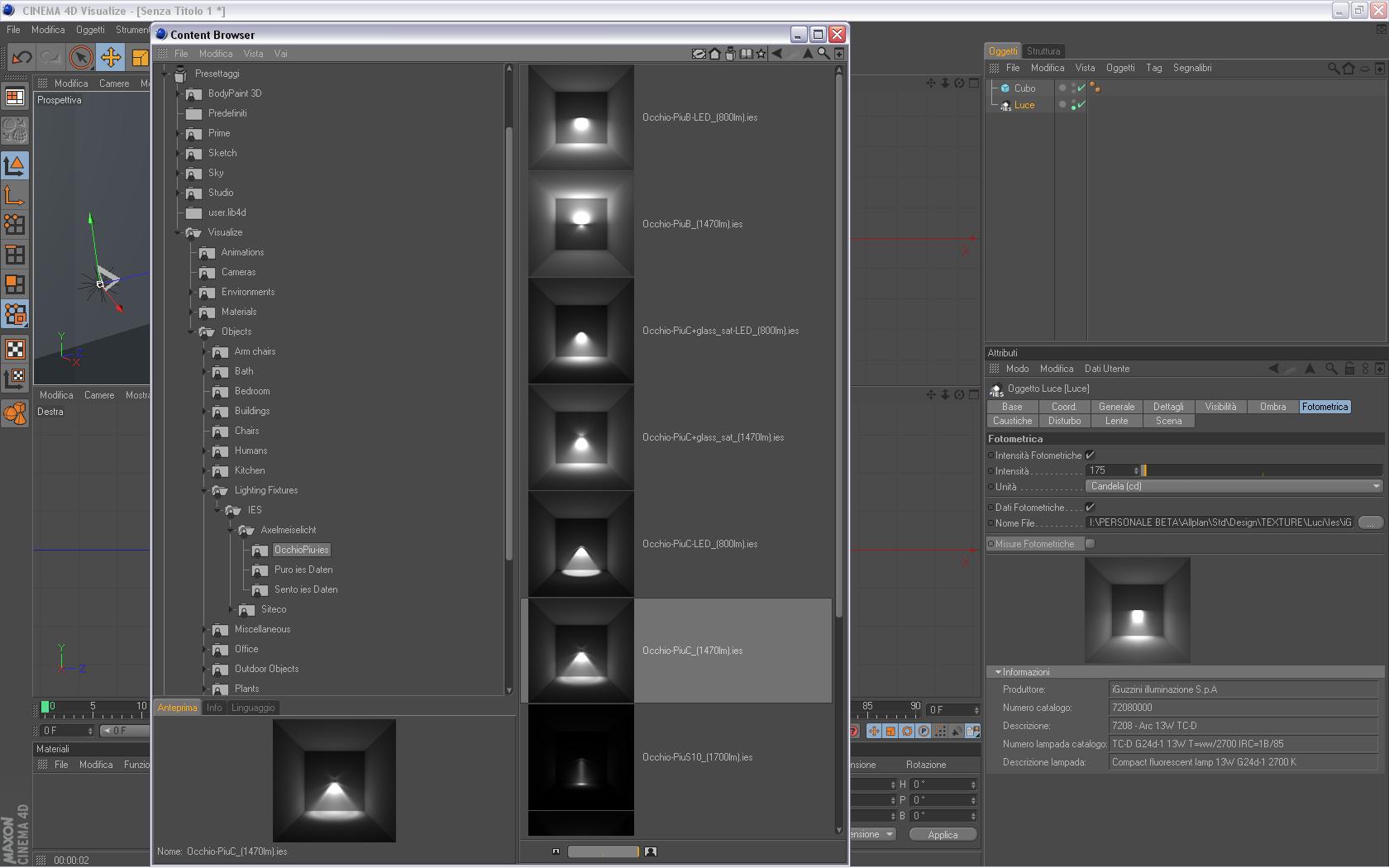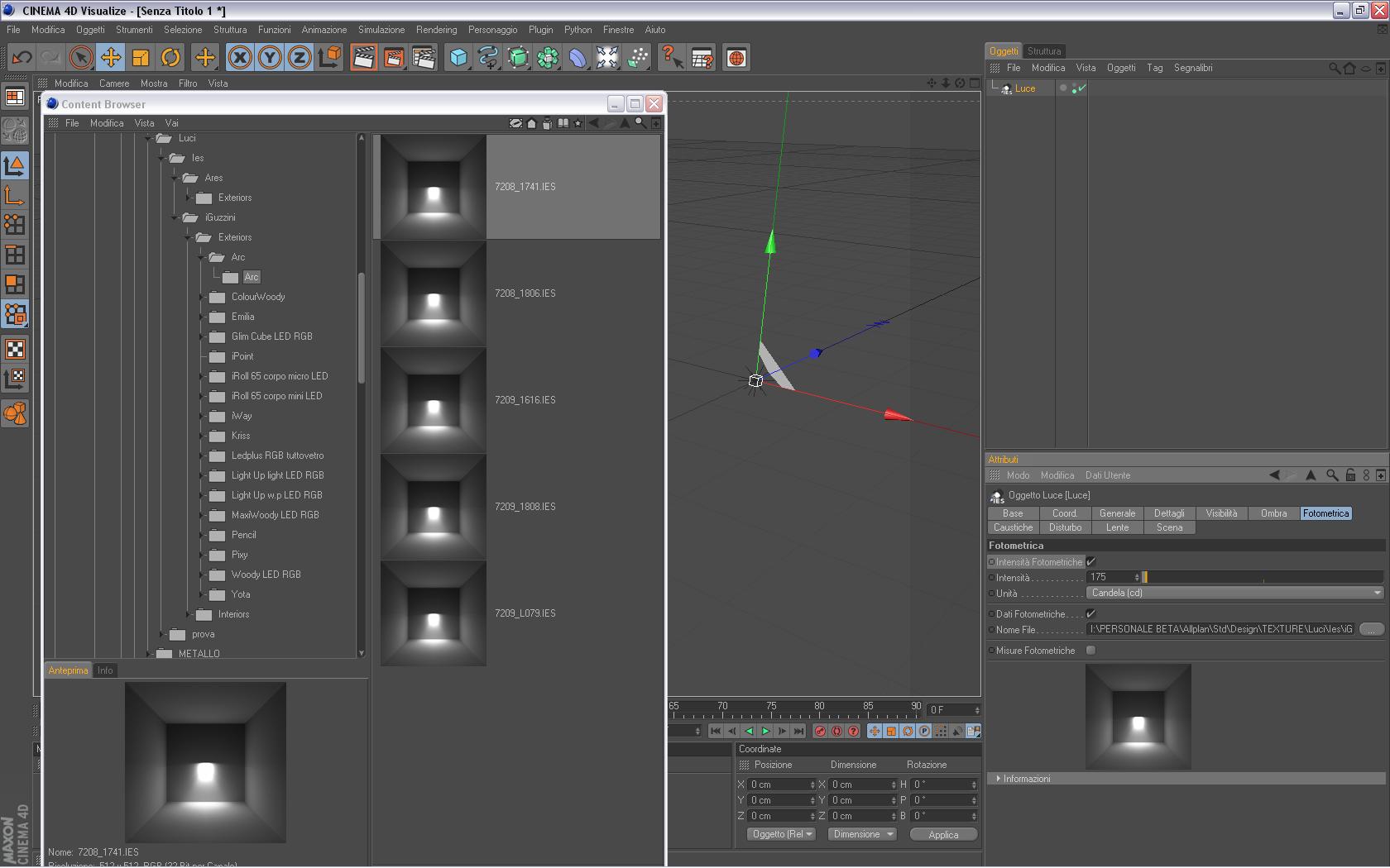 4) A questo punto hai la luce con i dati ies caricati, negli attributi della luce vedi che c'è la sezione “fotometrica” dove puoi vedere l'anteprima, i parametri ecc, e anche il tasto “...” dove poter caricare un'altro file ies nel caso vorresti cambiarlo (immagine allegata “2011-01-21_03”).