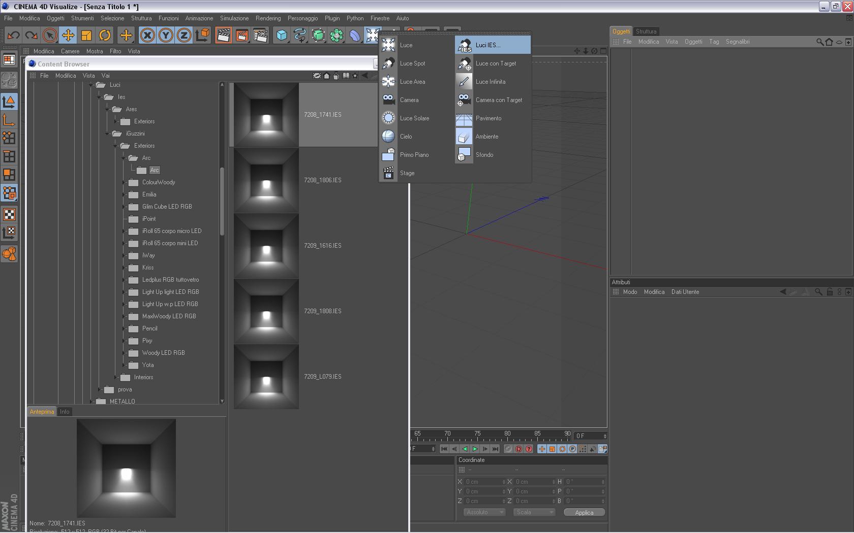 2) Sui tipi di luci c'è la “Luci IES” (immagine allegata “2011-01-21_01”), clicca per creare questo tipo di luce.
