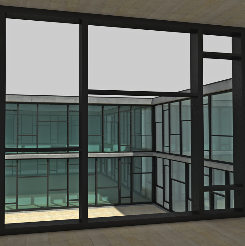 penso che nella prossima prova toglierò il montante verticale in primo piano ed il traverso alto, spostando più in basso il traverso basso in modo da vedere meglio la linea del marcapiano.
