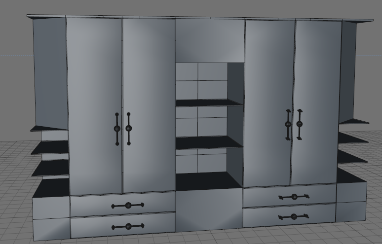 Per ora ho inserito il texture, resi un pochino più alte i ripiani e corretto un po la geometria dell'armadio..